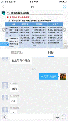 2020年2月20日左右原理课程组任课教师陆续开展了线上教学测试,通过部分学生在线与任课教师开展同步课堂,圆满完成了正式开课前的相关调试,及时发现了平台使用过程中的注意事项,并与超星公司协调找到了化解难题的技巧。下面是部分在线测试“同步课堂”的截图: