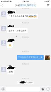 2020年2月20日左右《国际人权法导论》的任课教师组织部分学生在线开展同步课堂,圆满完成了正式开课前的相关调试,及时发现了平台使用过程中的注意事项,并与超星公司协调找到了化解难题的技巧。