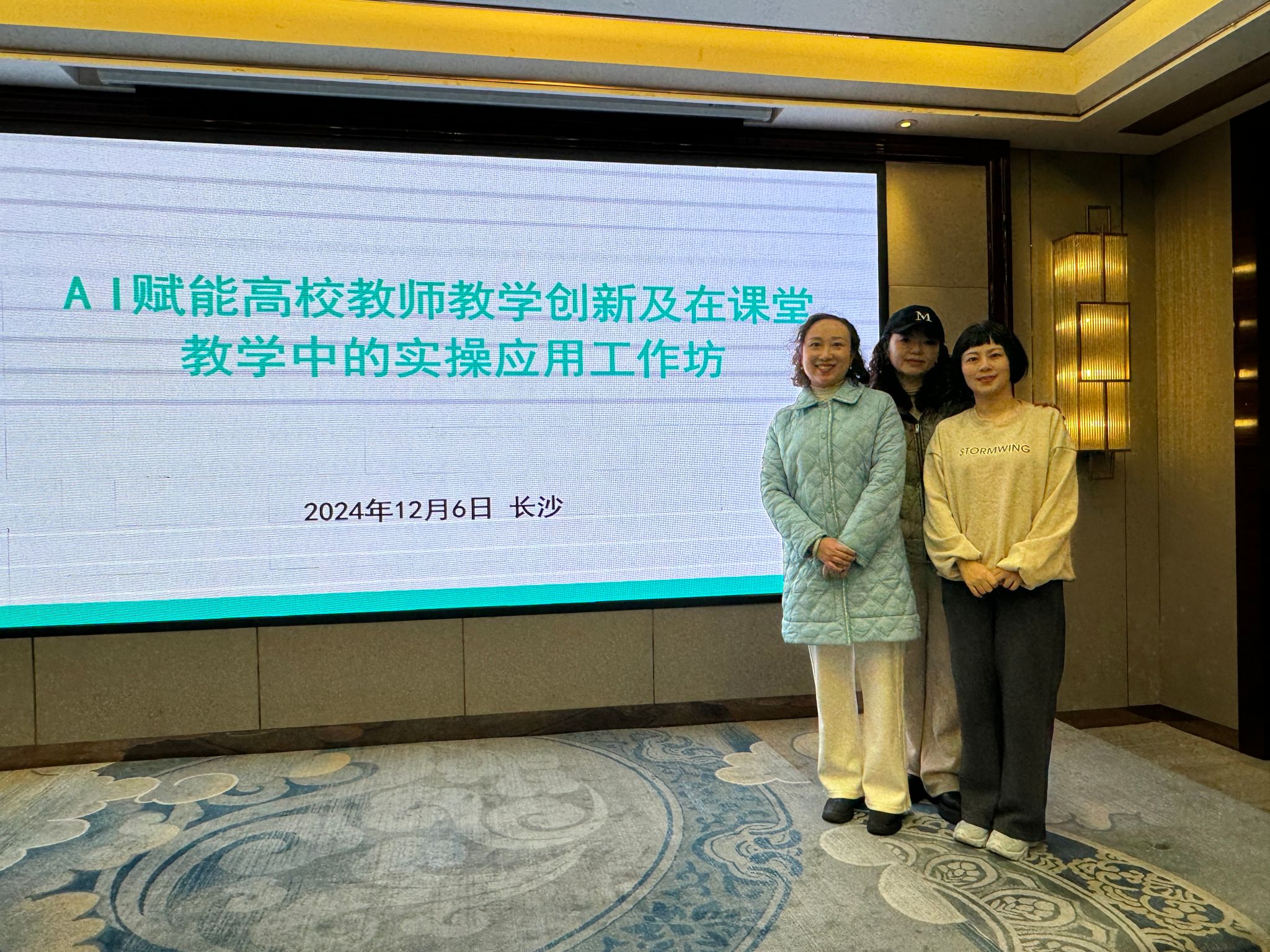 教师肖韵、张倩,鲜红在长沙参加了由中教国培师资教育科技发展中心举办的“AI 赋 能高校教师教学创新及在课堂教学中的实操应用研修班”学习。
