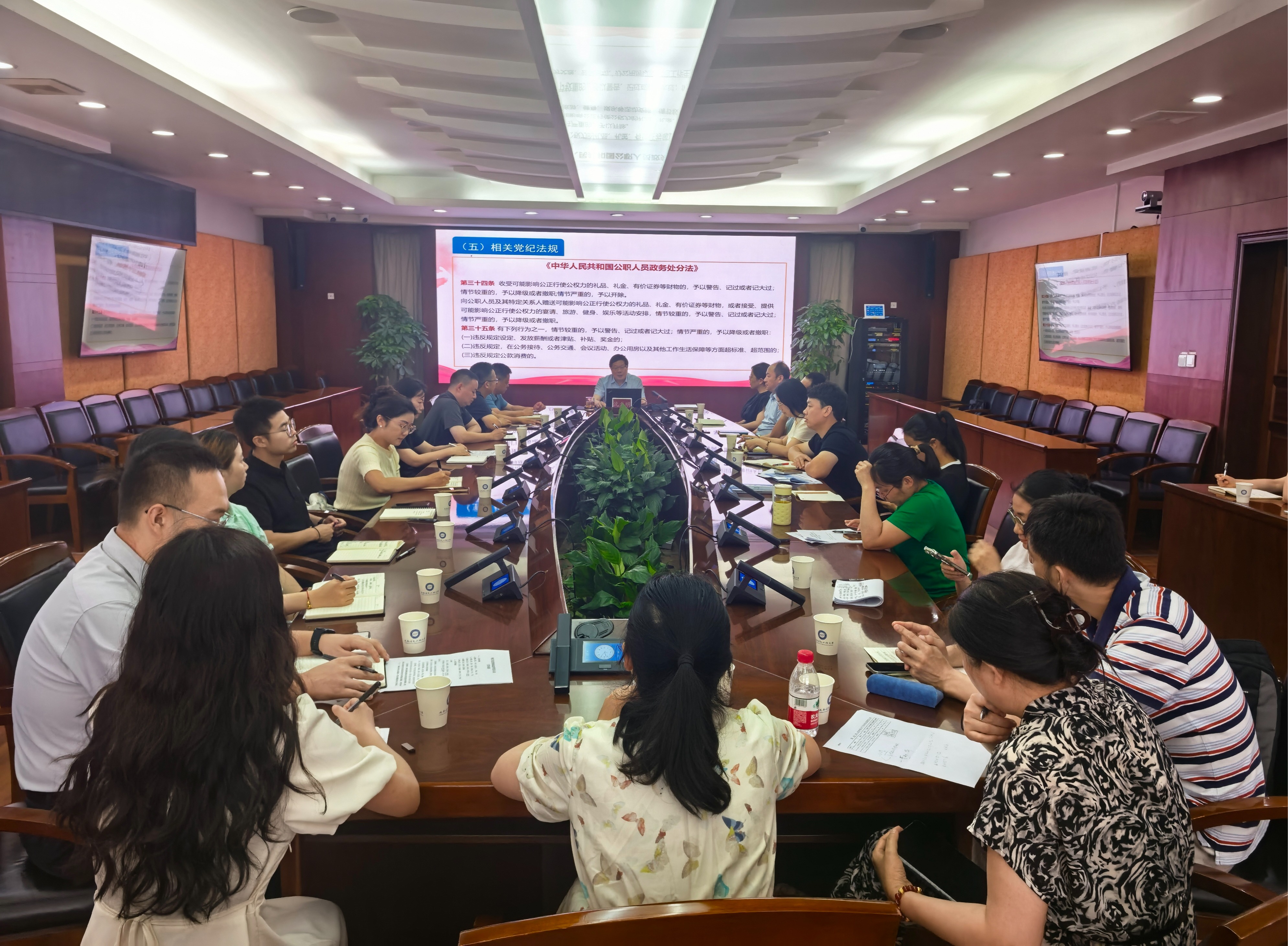 沈火明以“深入贯彻中央八项规定精神学习教育”为题,聚焦党的十八大以来深入贯彻中央八项规定精神的成效和经验,通过典型案例开展警示教育,公职人员违规吃喝认定标准等三个方面进行了系统阐述。