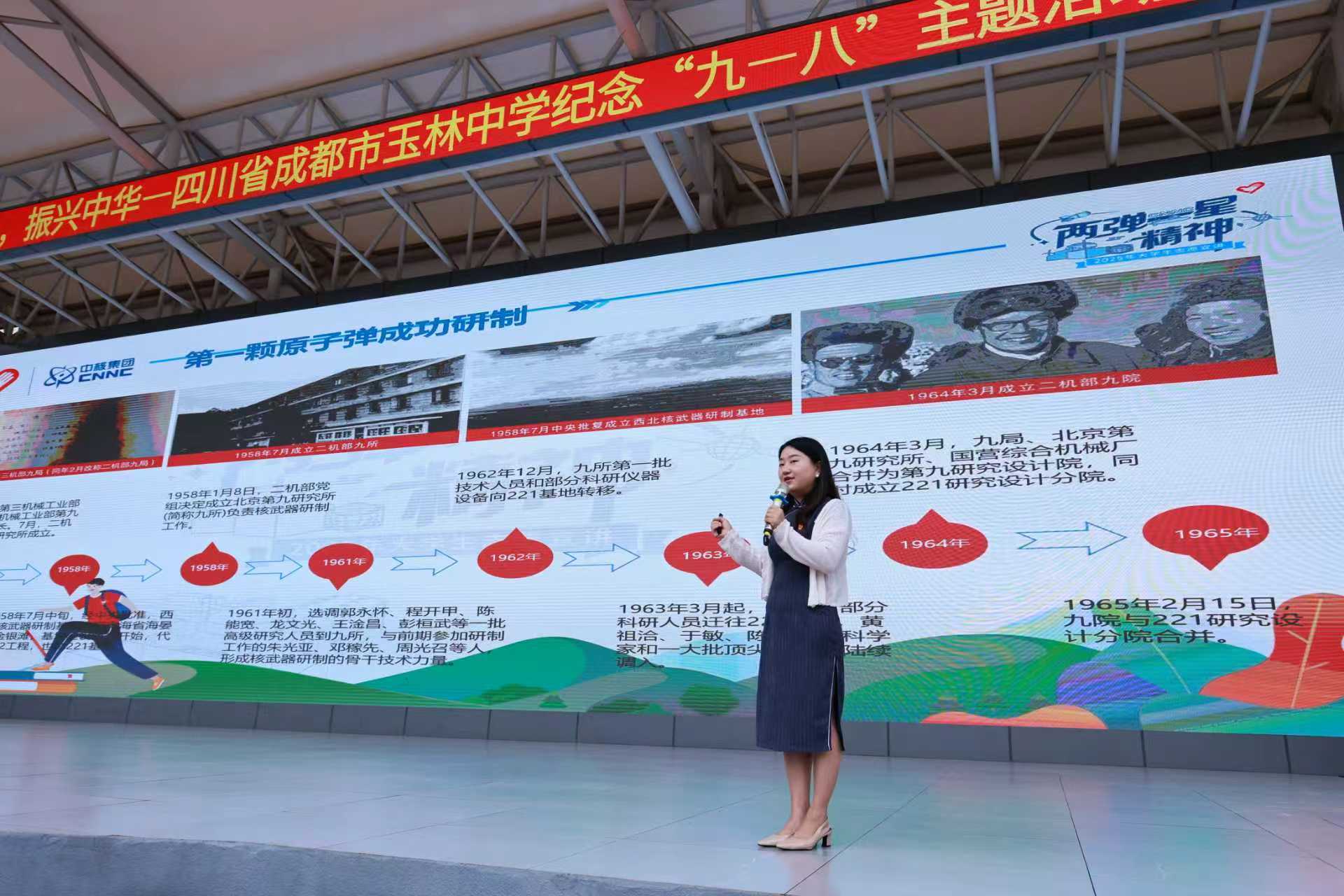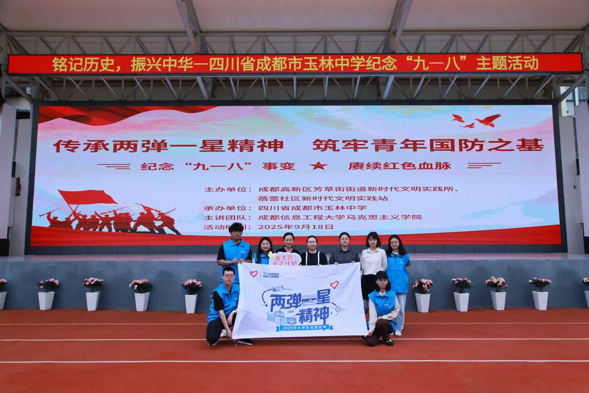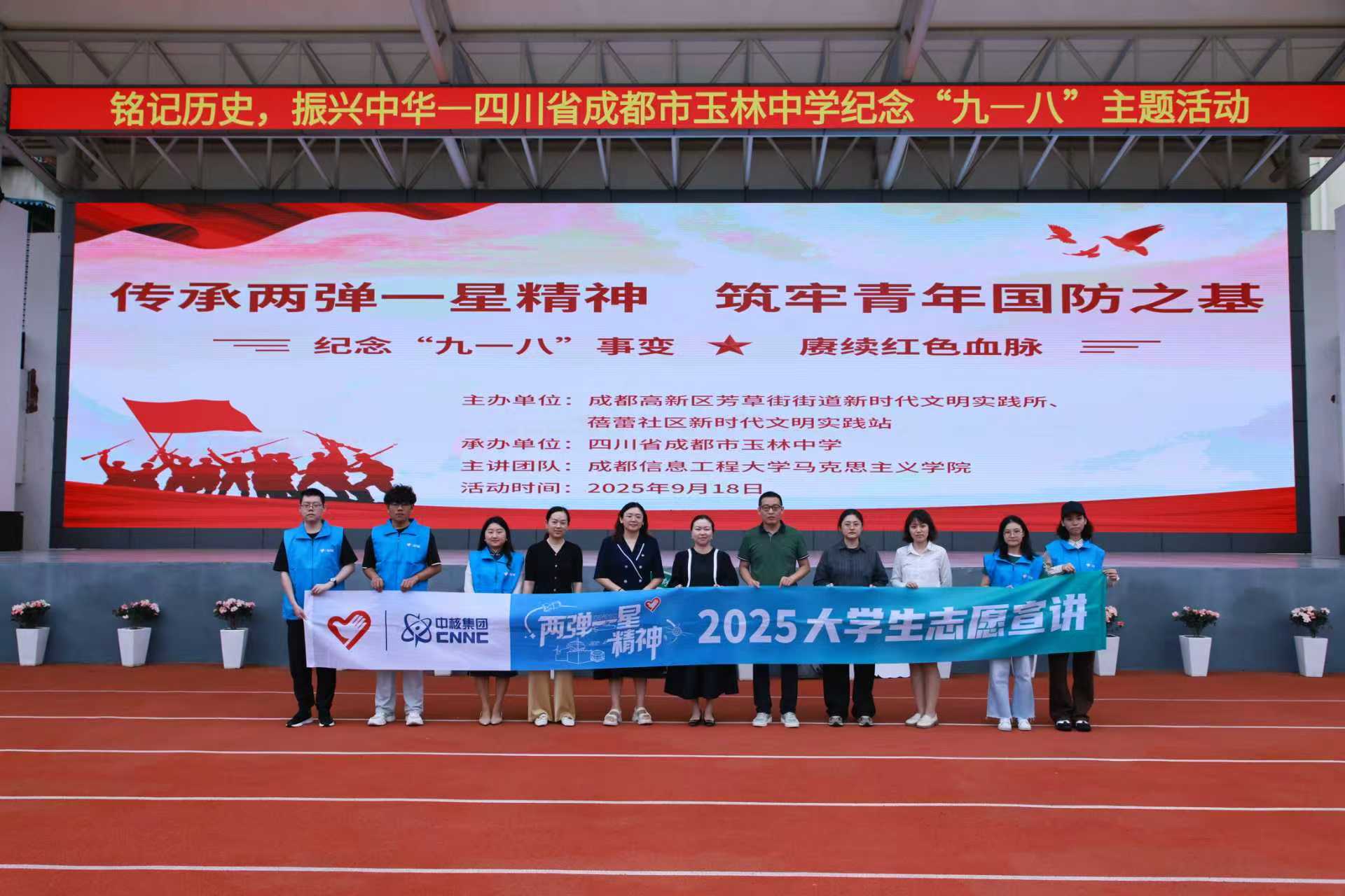 “信马铸魂”理论宣讲团联合成都高新区芳草街街道新时代文明实践所、蓓蕾社区新时代文明实践站,走进成都玉林中学,正式开启“两弹一星”精神全国大学生宣讲的第一站活动。宣讲团成员张兴义、唐梓晴、李垒基、张梁、覃晓霞参与此次宣讲,其中张兴义担任主讲人,宣讲主题为“传承‘两弹一星’精神,筑牢青年国防之基”。