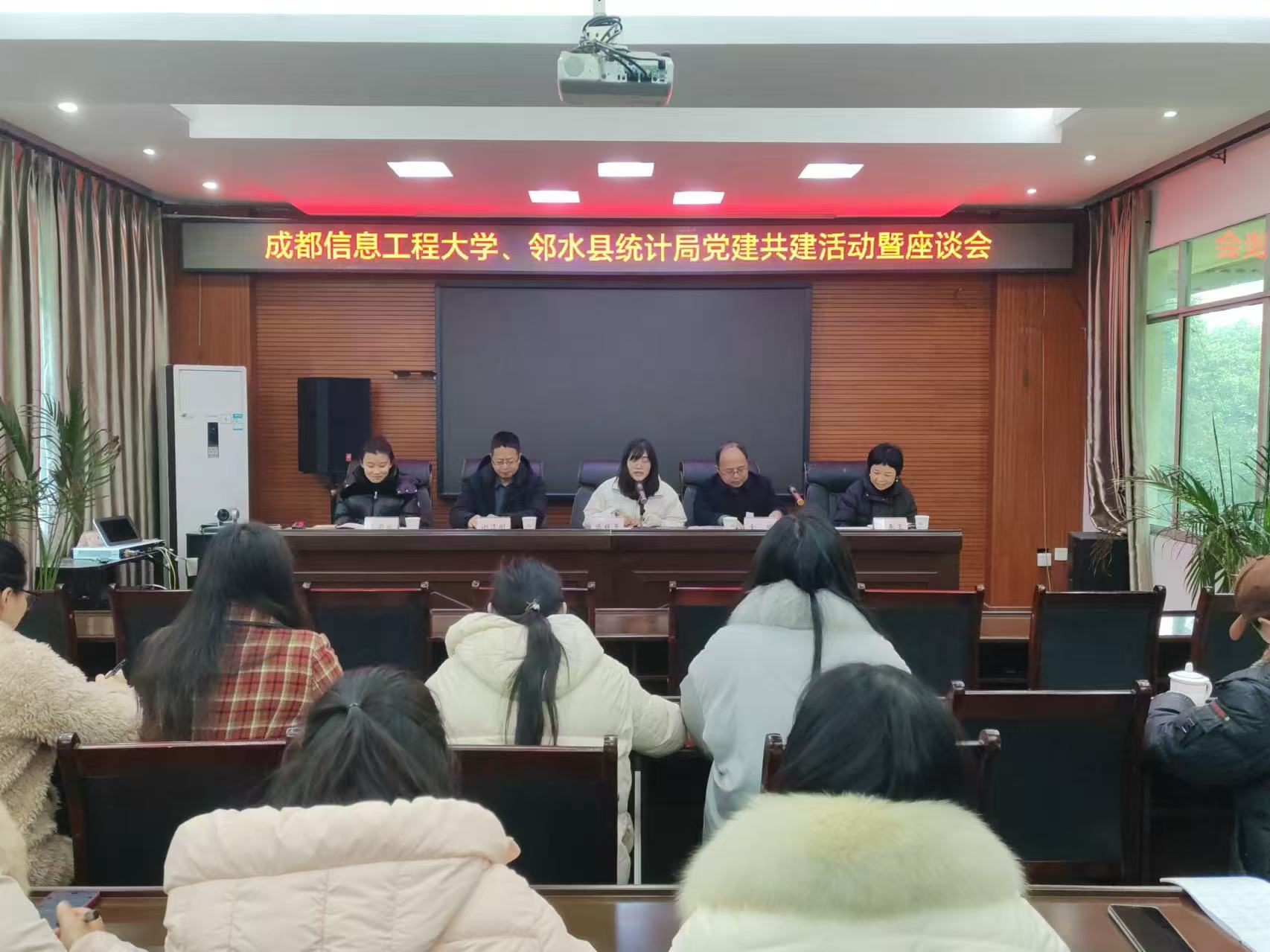 12月27日,应广安市邻水县统计局邀请,韩剧tv 党委书记谢清明和统计韩剧tv 党委书记金明一行赴邻水县开展党建共建活动。邻水县统计局吴雪飞局长向谢清明一行介绍了邻水县社会经济发展情况和统计局党建工作,双方就新形势下如何高效开展党建工作进行了座谈交流,并就党建定期交流和学生毕业实习等事宜达成合作意向。谢清明还应邀做了《学习贯彻党的二十届三中全会》的党课报告。