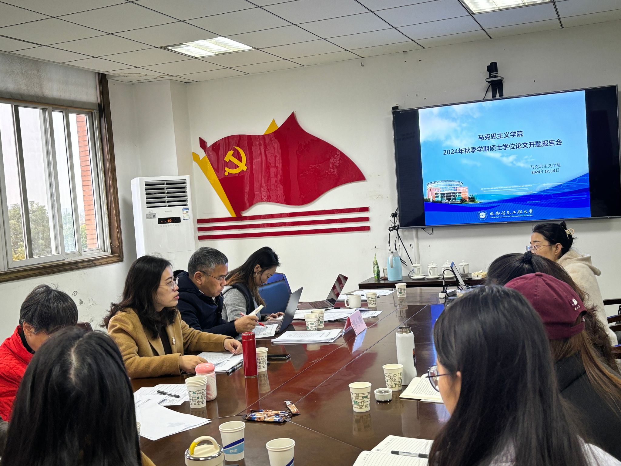 开题报告会上,首先,热烈欢迎来自四川省委党校的廖小明院长,莅临指导2023级硕士学位论文开题报告会。接着,2023级研究生张兴义、方正、唐梓晴、国洪瑞和孙舒菡依次上台,就各自的论文选题背景、研究目的、研究方法、研究内容、创新点以及预期成果等内容进行了详细阐述。学生们选题广泛,主要涉及基层思想政治教育、情感劳动异化、习近平人才观、水利思想、思想政治教育话语建构,涵盖马克思主义理论与当代社会热点问题,展现出对马克思主义理论学科研究的深入思考与积极探索。