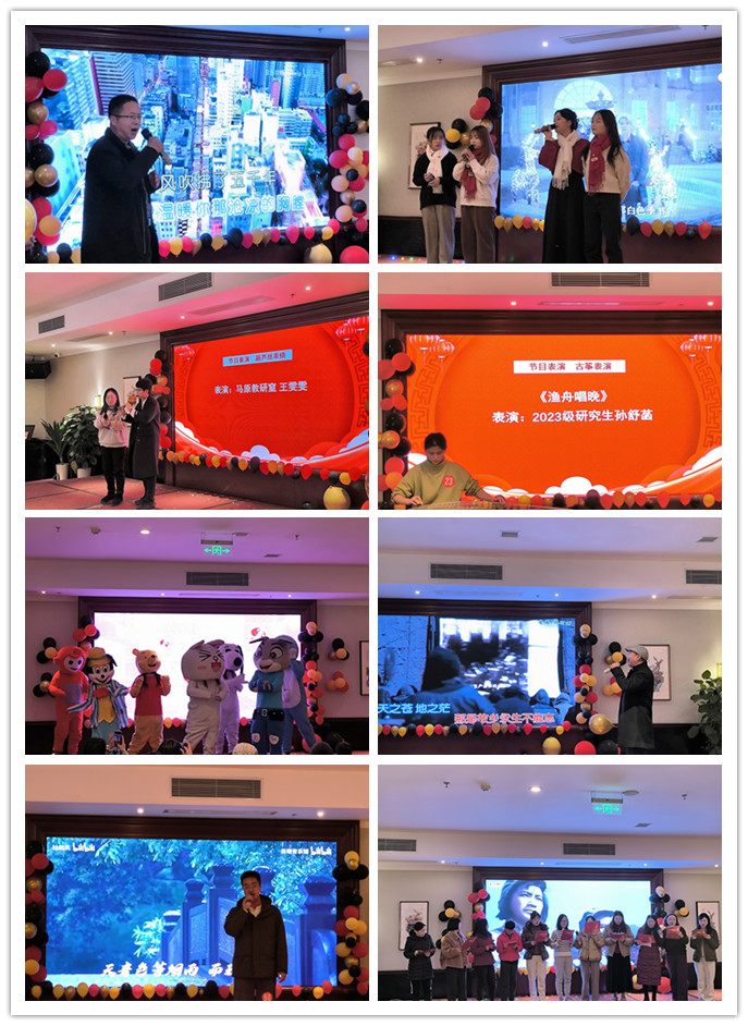 联欢会上,诗歌朗诵《青春的誓言:新年的奋斗与梦想》和《沁园春·雪》展现了师生们对美好未来的憧憬。歌曲《东方之珠》《青花瓷》《永生不忘》《娘子军连歌》等节目,赢得了现场观众的阵阵掌声。乐器演奏环节,古筝《渔舟唱晚》和葫芦丝串烧将中国传统音乐之美展现得淋漓尽致。