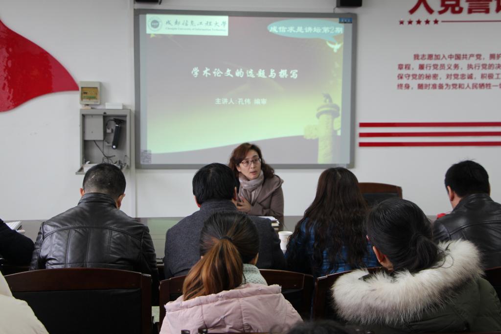 戴丽红首先对孔伟教授的到来表示了热烈的欢迎。孔伟教授作的是题为“学术论文的选题与撰写”的讲座。